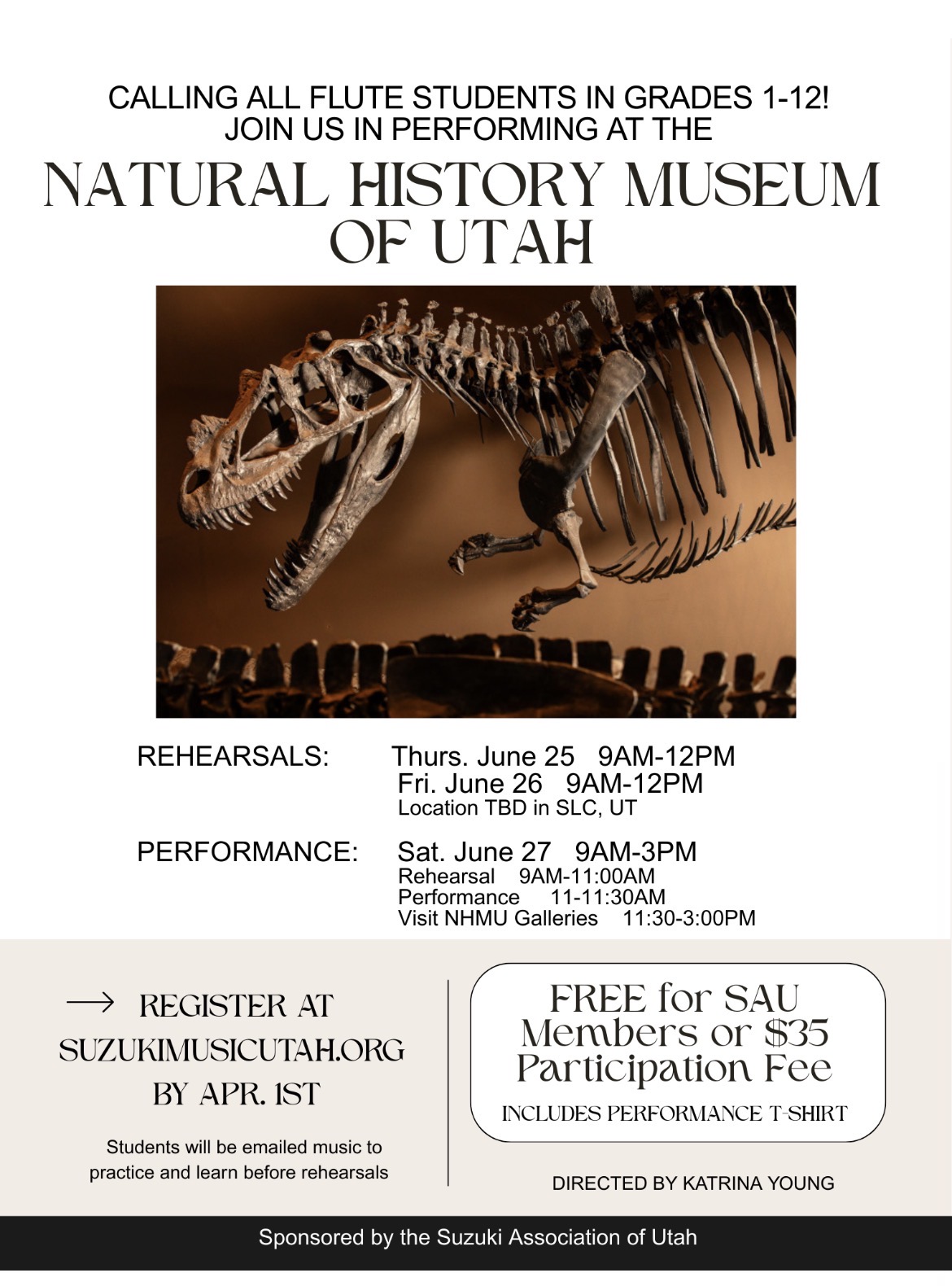 Sign up by April 1st to perform in the Natural History Museum of Utah June 27th