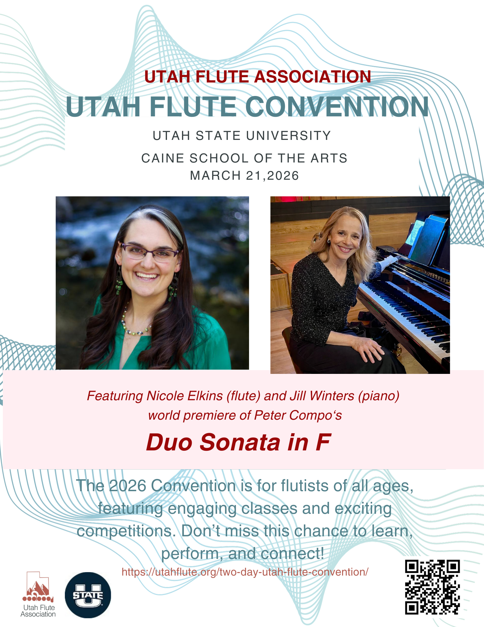 The Utah Flute Convention on March 21, 2026, takes place at the Caine School of Music at Utah State University, with performances and educational experiences for flutists of all levels.